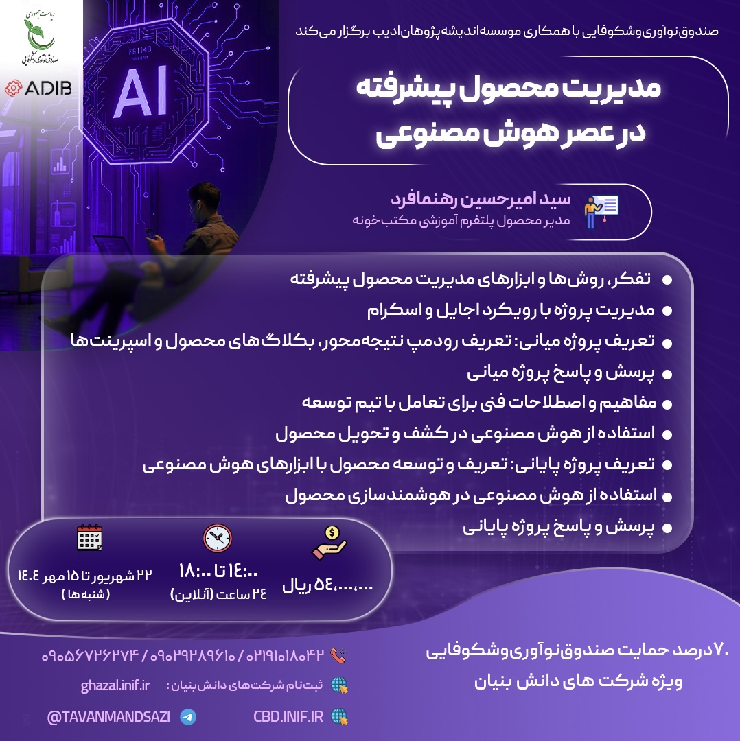مخاطبین دوره: مدیران و کارشناسان محصول در شرکتهای فناور و دانشبنیان